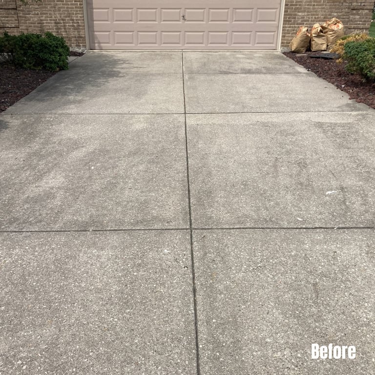 See how professional pressure washing restores driveways, sidewalks, patios, and other concrete surfaces.