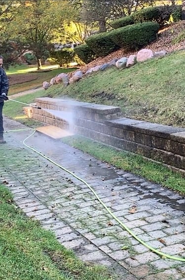 Over time, surfaces such as driveways, sidewalks, patios, and retaining walls develop dark staining, algae, and buildup from weather and daily use. Professional power washing removes these stains and helps restore a cleaner, well-maintained look.